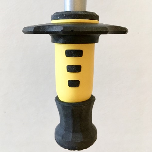 - Die Hartmetallspitze steckt stabil in einer Kunsstoffhülse, welche innen mit einem besonders weichen Dämpfungsmaterial ausgefüllt ist.