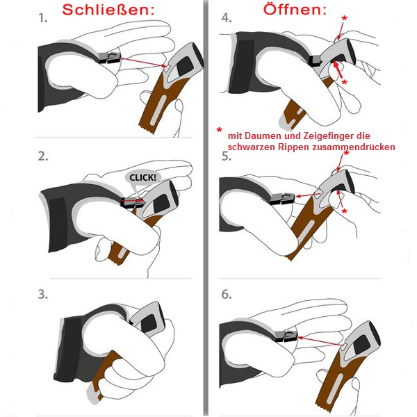 • Handschlaufe mit Klick - Schnellverschluss zum schnellen Lösen der Schlaufe vom Griff
